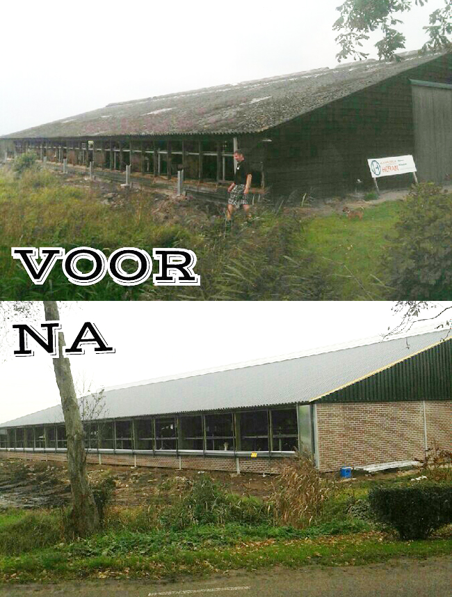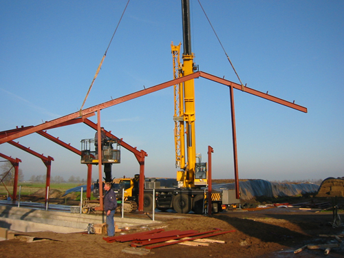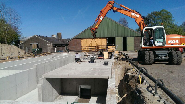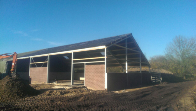 Het bouwen van een melkveestal voor fam. Drost, volledig onderkelderd.